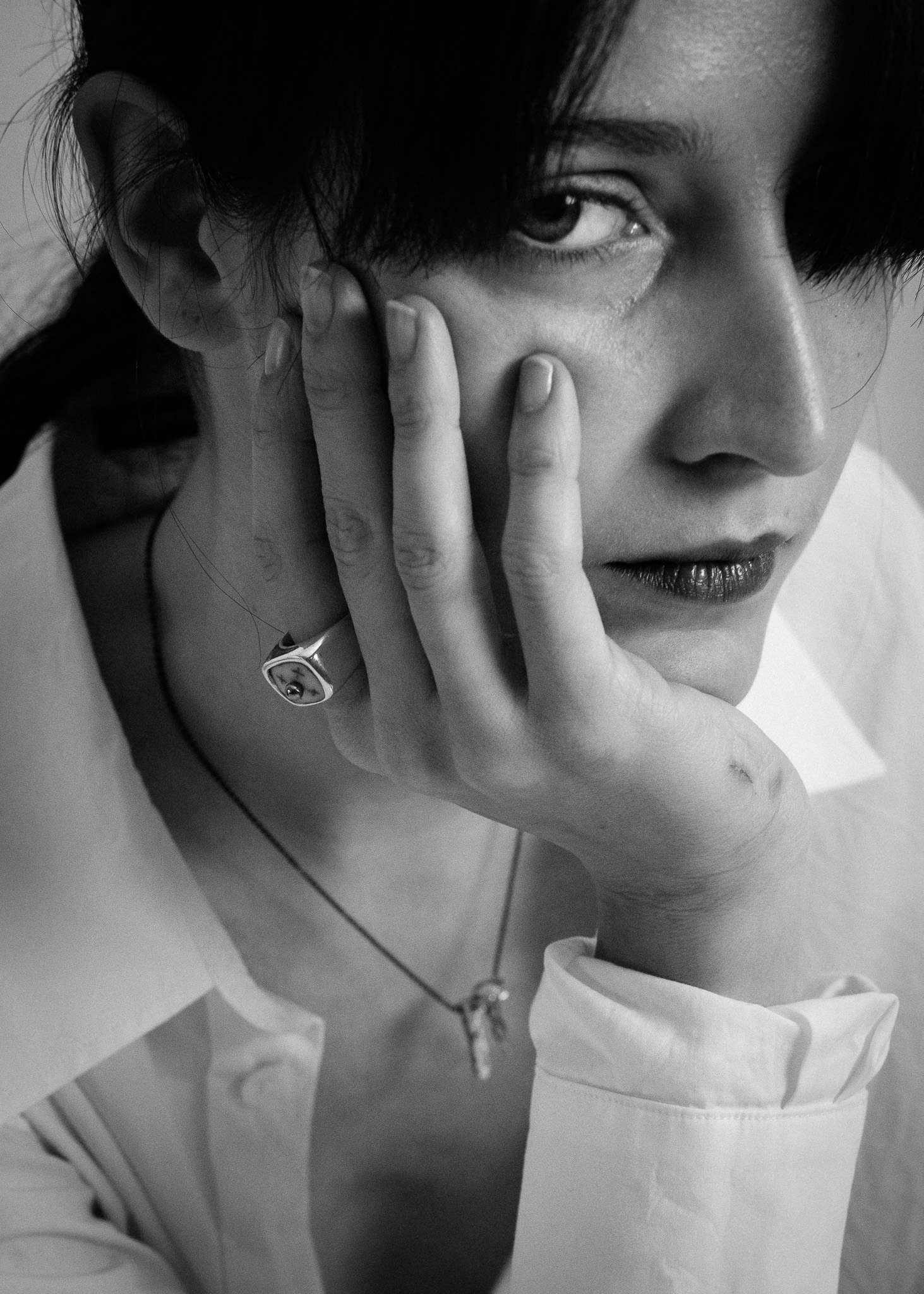 Tattoo ring with dermal piercing in the middle.
